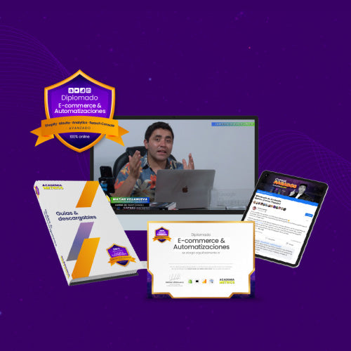 En este diplomado, aprenderás todo lo necesario para crear una tienda en Shopify, implementar una estrategia efectiva de Email Marketing con Klaviyo y obtener insights valiosos con Google Analytics y Search Console.